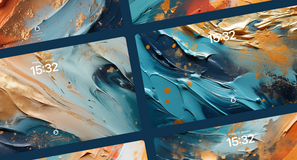 I was looking for a perfect wallpaper for a long time and finally tried to make my own set. If you're like me and you want your desktop to match your mood and energy, you'll love these. Unlike the glass collection, this set is more chaotic and artistic, with colorful paint strokes and gold to add elegance.