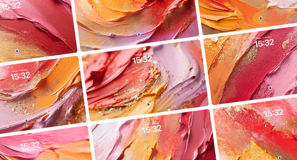 Colorful, wallpaper set inspired by color palettes and dried mixed paint. I try not to call them wallpapers – you can use them for your desktop or tablet, but you can also use them to make your socials, websites, bentos pretty – you call it :) * I only ask you NOT to resell them.