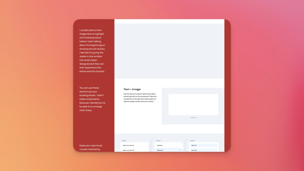 This template helps you build clean, story-driven UX case studies directly in Figma. When used correctly, the structure will help you talk about your project and present it.